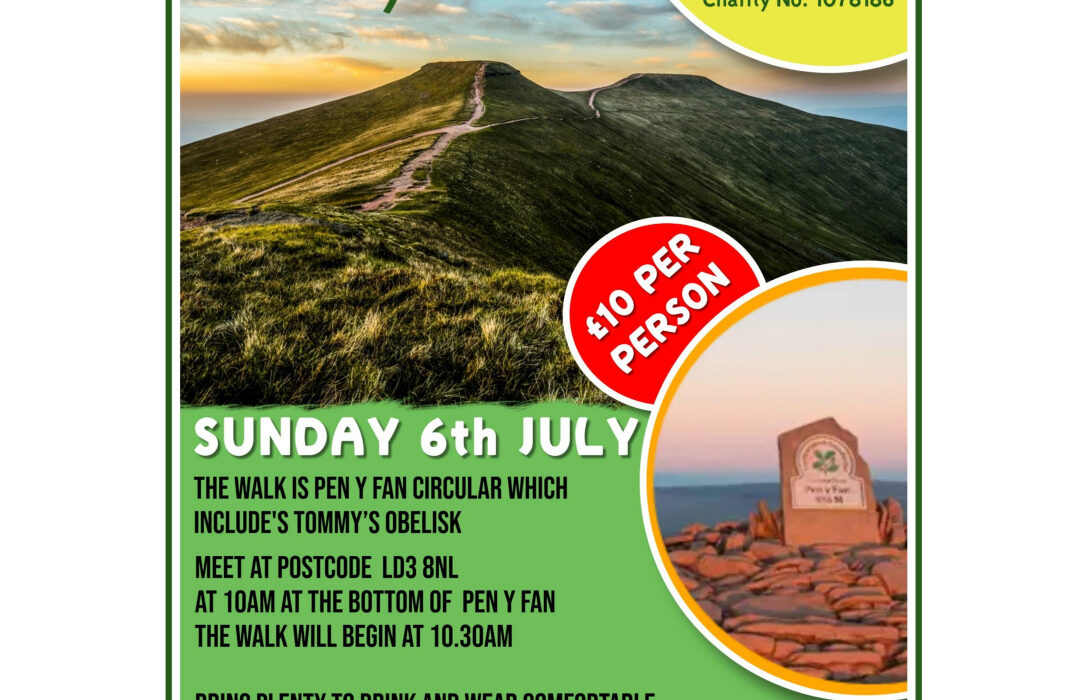 A walk up Pen Y Fan, but the circular one this year which will include Tommy’s obelisk. Join us on this challenge and hear the story of Tommy’s obelisk.