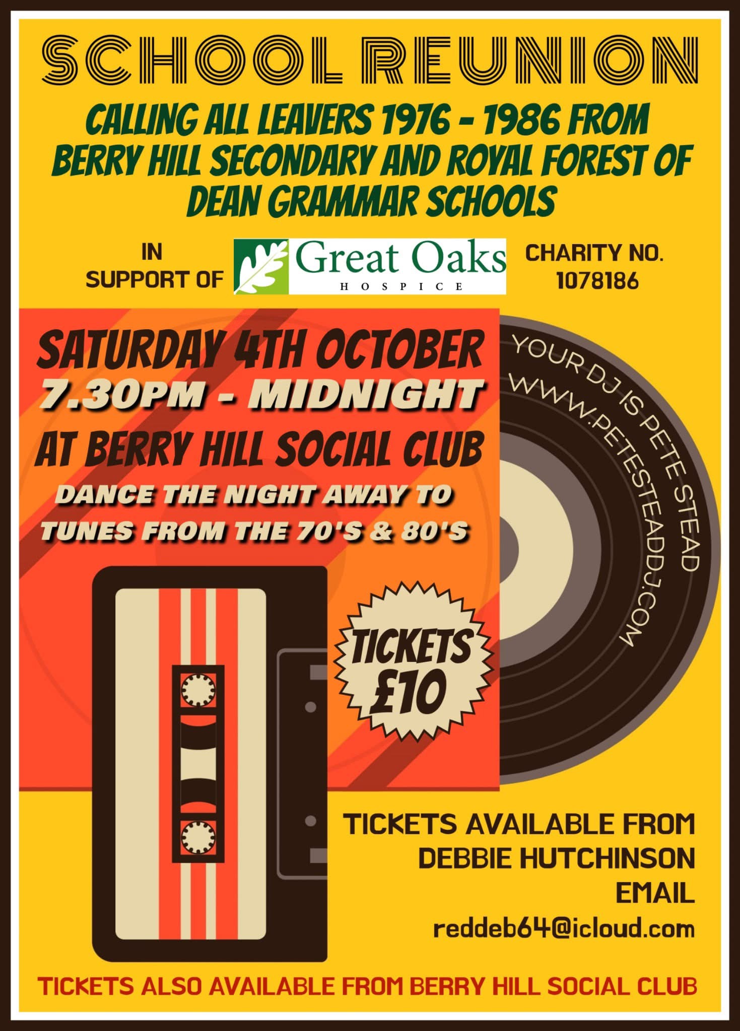 This special reunion is open to all former pupils who left Berry Hill Secondary and Royal Forest of Dean Grammar School between 1976 and 1986. Itβs the perfect chance to reconnect, reminisce about school days, and share memories with familiar faces.